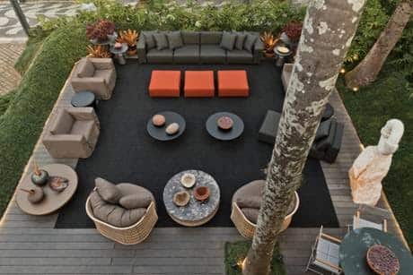 O espaço “Jardim Principal” foi desenvolvido pelo paisagista Wolfgang Schlögel para representar as encantadoras áreas verdes do outdoor da capital paranaense. Para valorizar o deck mobiliado e envolvido pela vegetação, o profissional incorporou no ambiente as esculturas dos artistas Alfi Vivern e Soraia Savaris.