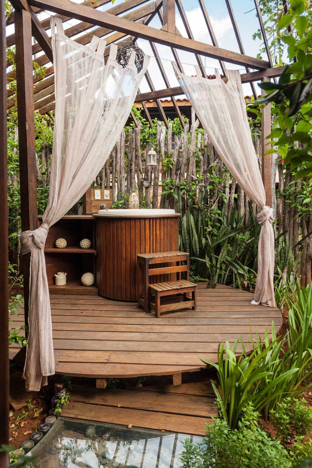 “A proposta foi trazer mais consciência ambiental ao local, adequando-o ao reaproveitamento, acessibilidade, consumo de água, minimização de consumo e uso de tecnologias limpas, além de uma ampliação de algumas áreas”, explica a arquiteta, que contemplou em seu projeto o aumento da área de solo permeável, com a troca do acesso principal por um deck de madeira vazada, levando mais leveza e contato com a natureza local. A cozinha também passou por reforma. com a criação de um local específico para armazenamento de produtos, higienização, entrada e saída de pratos.