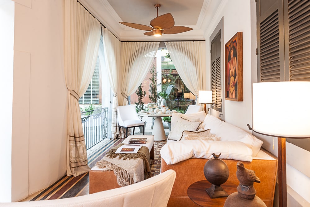As arquitetas Luiza Nogueira e Simone Lima apostaram no clássico para a Varanda Rui Barbosa. Na estrutura do sobrado do século XIX, peças em tons brancos e estampas se contrapõem com objetos novos e antigos, como a lustre Baccarat da década de 1930, Art Décor, em cristal e bronze, e a Mesa PI, da Casa Pronta, assinada pela design Jaqueline Teles. O local é divido em dois espaços que seguem a mesma composição e harmonia com a presença de fotografias do Recife, de Ângela Agra, tela do artista João Câmera e escultura do Mestre Galdino. "É um ambiente monocromático que possui um estilo atemporal e usual que tem como proposta permitir que você se sinta em casa", explica Simone Lima.