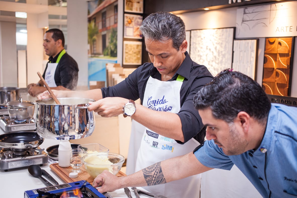 A primeira etapa aconteceu na tarde desta quarta-feira (28), na Refinare, em Boa Viagem. Os arquitetos George Casé e Saulo Barros cozinharam para três jurados: a jornalista Mirella Martins, o chef Kiko Selva e a empresária Natalia Taboas, que tiveram a difícil missão de avaliar o sabor, apresentação e criatividade dos pratos.