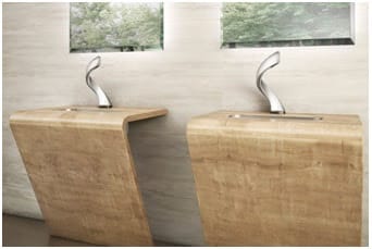 - Projeto: A arquiteta Juliana Pippi traz algumas dessas tendências na composição acima. Os tons amadeirados e pedra estão em harmonia perfeita com o design orgânico do misturador Oni, da Docol (Foto: Divulgação)