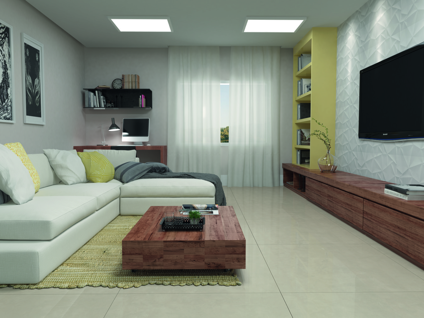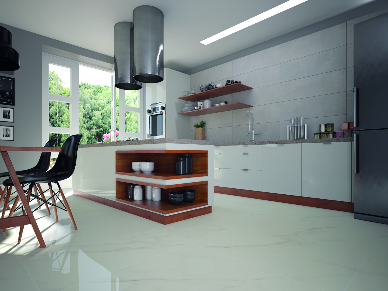 - LUMINOSITA HD: Sinônimo de modernidade e praticidade essa coleção apresenta um porcelanato inspirado na contemporaneidade da aparência do cimento com o brilho do acabamento polido. Os tons de cinza que são uma tendência forte e constante na arquitetura e decoração, agora também estão disponíveis no formato 90x90cm. O tom transmite neutralidade e permite explorar as demais cores em outros elementos, aliado ao grande formato e ao alto brilho, essa coleção é ideal para tornar os ambientes elegantes e versáteis (Foto: Divulgação)