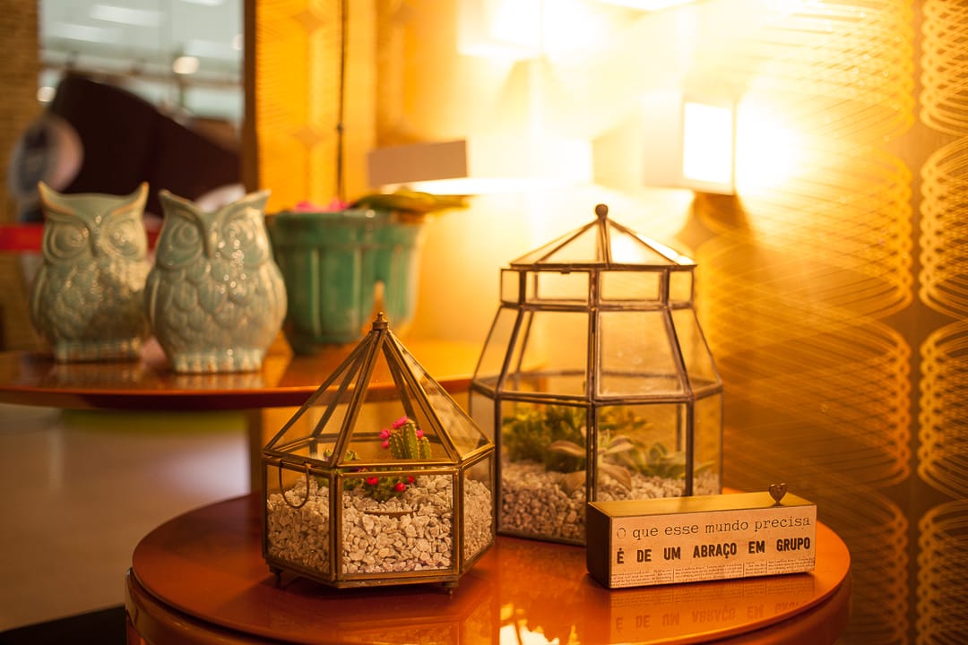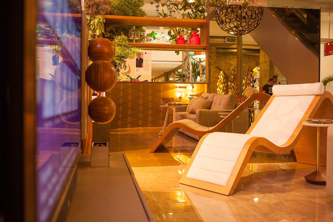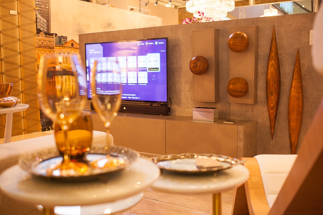 Um ambiente que deseja unir a família e oferecer um momento de descontração e conforto. Foi caminhando nesse conceito que as arquitetas Patrícia Xavier, Heloísa Araújo e Nairana Carvalho projetaram o espaço Home Theater para a mostra DeAaZ. No local, o destaque vai para a cadeira Chaise Rio, do design Paulo Sérgio Niemeyer, item que deu base para a escolha de todas as outras peças que compõem a proposta de decoração. Itens regionais também foram aposta do trio com o uso das esculturas de madeira, da artista plástica Cristine de Holanda, e as peças de acrílico trabalhadas em chapas, do artista Alexandre Lima.