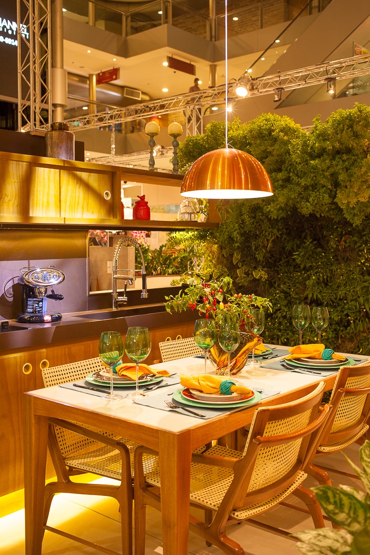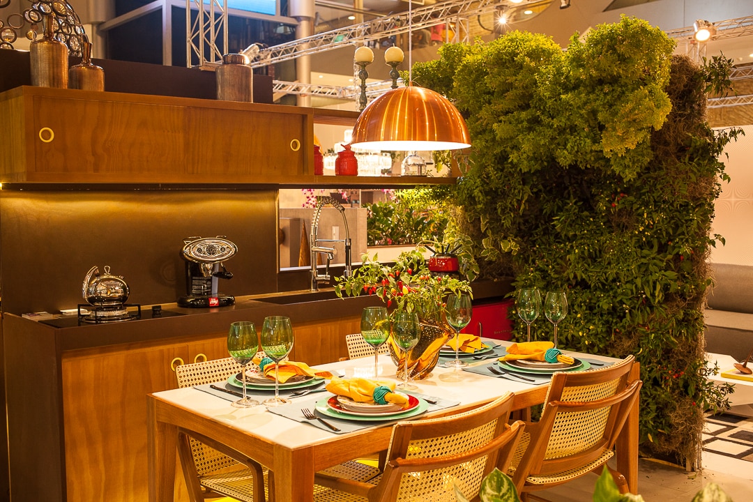 A “ Varanda Gourmet” foi o espaço criado pelo arquiteto Maury Santana que se inspirou na década de 50 para compor o ambiente que possuiu elementos casuais e contemporâneos. O espaço é baseado nos tamanhos reais das varandas de hoje em dia. Destaque para o belo jardim vertical que funciona também como uma horta composta por diferentes tipos de mudas que acabam facilitando o preparo das refeições na própria varanda.