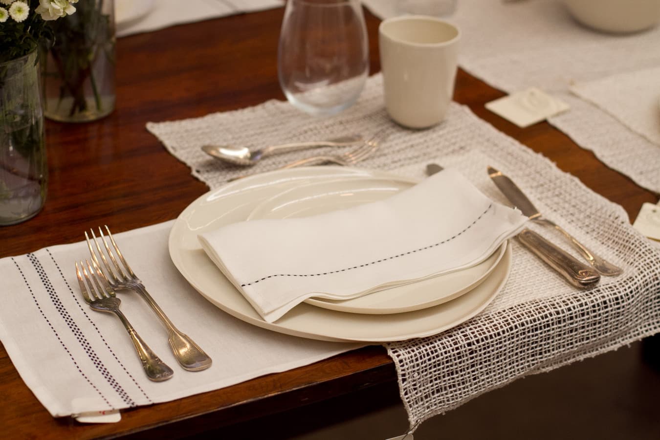As peças, fabricadas por tecidos nobres e de fácil manuseio, como o linho stropicciato, são uma releitura de acabamentos manuais tradicionais e bordados que buscam referência do mundo urbano e culturas locais, propondo ainda versatilidade e praticidade no uso. “Desenho módulos de tecido pra compor uma mesa e cada item pode ser utilizado de varias maneiras, isto é, o meu torchon, uma mini toalha, serve para uma pessoa só ou para compor vários lugares ou um buffet americano, por exemplo”, destaca. “Minha proposta como designer de têxtil utilitário é contribuir, em torno das nossas mesas, no convívio familiar e social”.